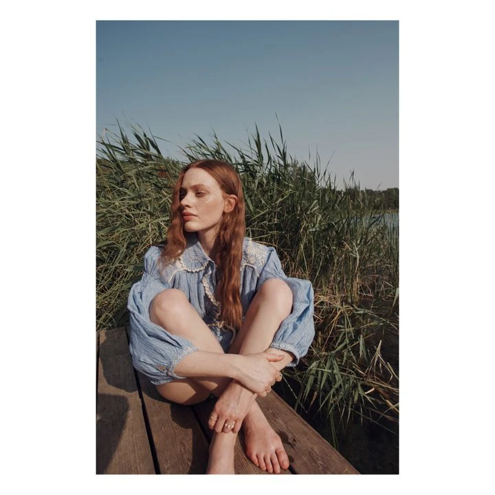 Louise Misha Striped Linen Blouse Gil | Blue