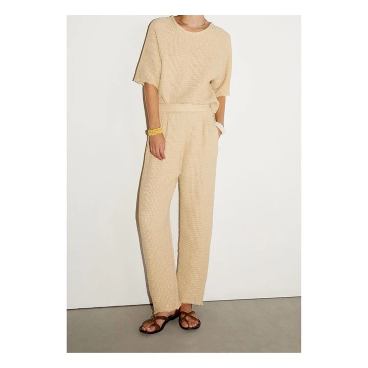 Masscob Cova Cotton And Linen Waffle Top | Ecru