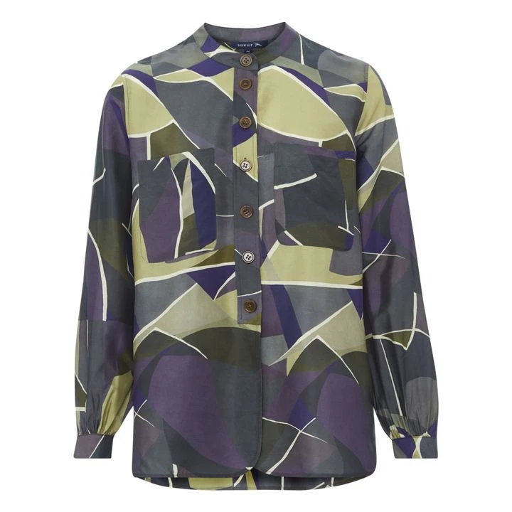 - Button(s) at the neck, Front button(s), Decorative print